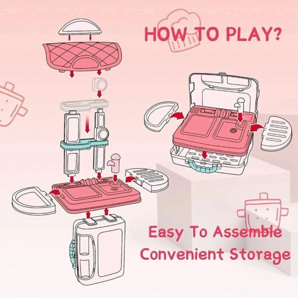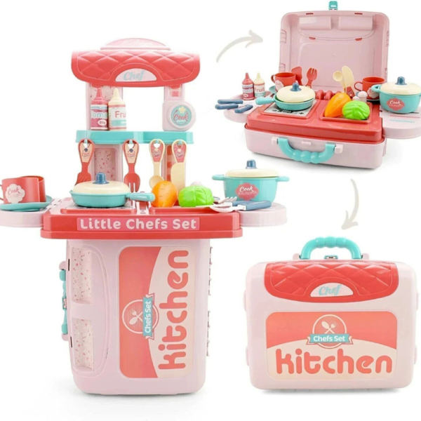 • 3-in-1 Design – Converts from a compact suitcase into a complete kitchen play station