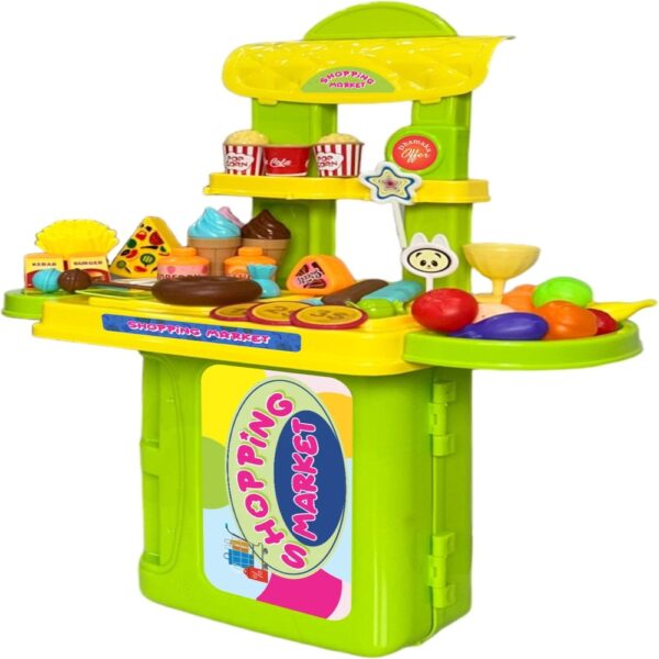 TechHark Little Shopper 3-in-1 Portable Shopping Market Play Set with Suitcase | Pretend Supermarket Toy for Kids