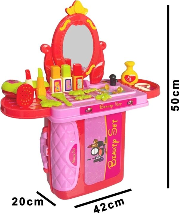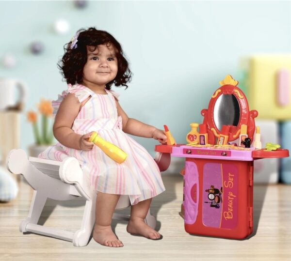 The Little Stylist Beauty & Dressing Table Play Set is a fun and educational pretend-play toy designed for children who love creative self-expression. This colourful set transforms from a compact suitcase into a charming mini dressing table, complete with mirror and salon-style accessories.