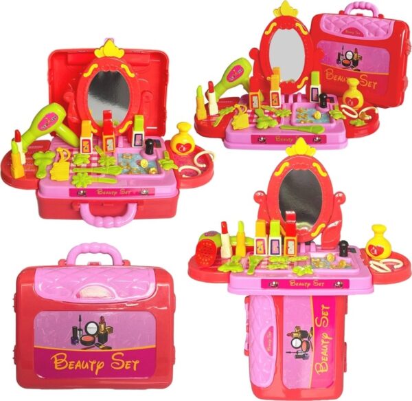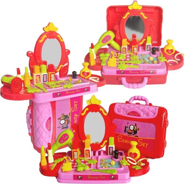TechHark Little Stylist 3-in-1 Portable Beauty & Dressing Table Play Set with Suitcase | Pretend Makeup Toy for Kids