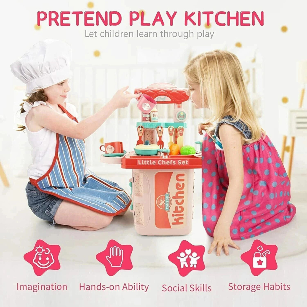 TechHark Little Chef 3-in-1 Portable Kids Kitchen Play Set with Suitcase | Pretend Cooking Toy for Children