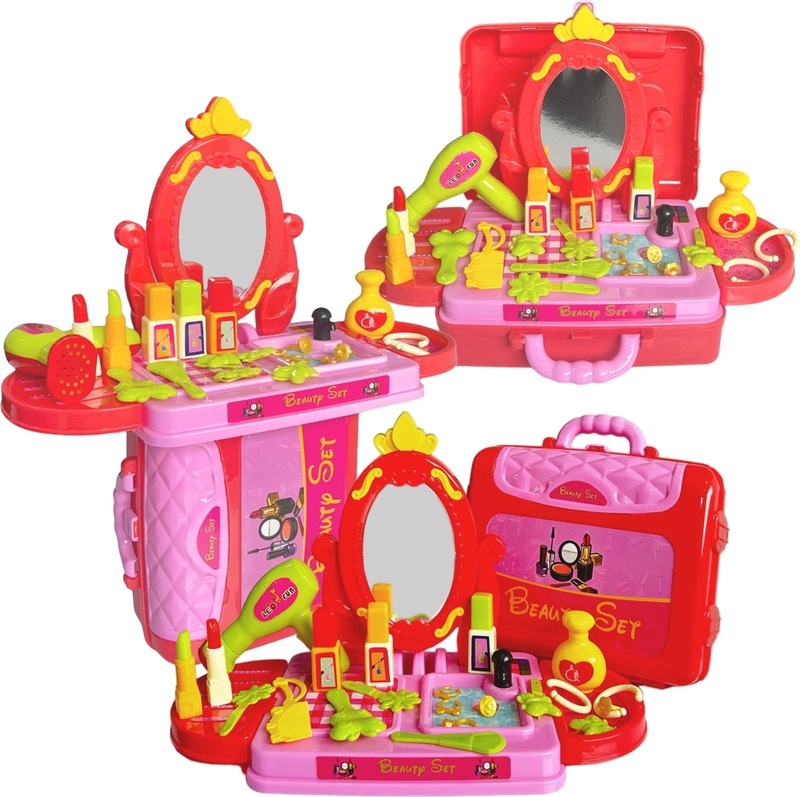 TechHark Little Stylist 3-in-1 Portable Beauty & Dressing Table Play Set with Suitcase | Pretend Makeup Toy for Kids